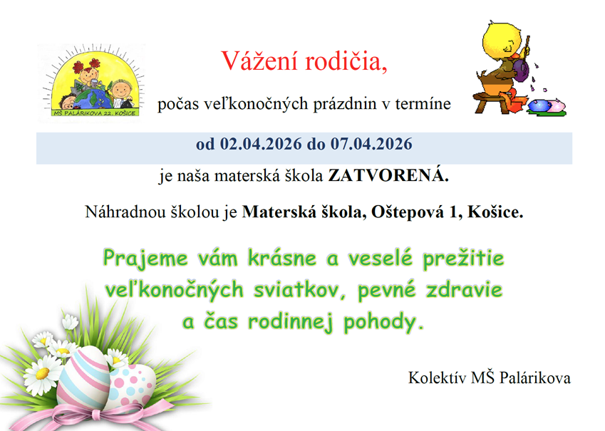 Vedúca ŠJ denne od 10.00 do 12.00 hod. a podľa telefonického dohovoru.